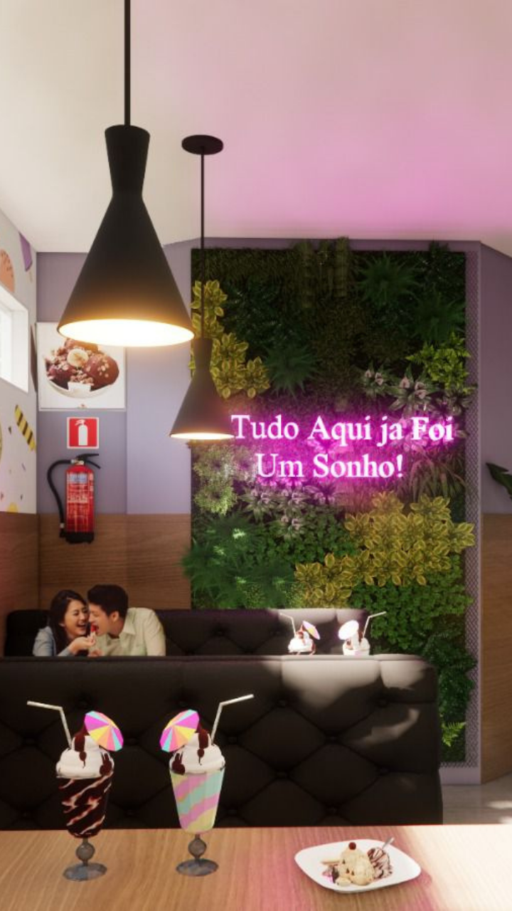 Desenvolvo um moodboard que traduz o conceito do projeto, reunindo cores, materiais, texturas e sensações que irão guiar todas as escolhas estéticas.